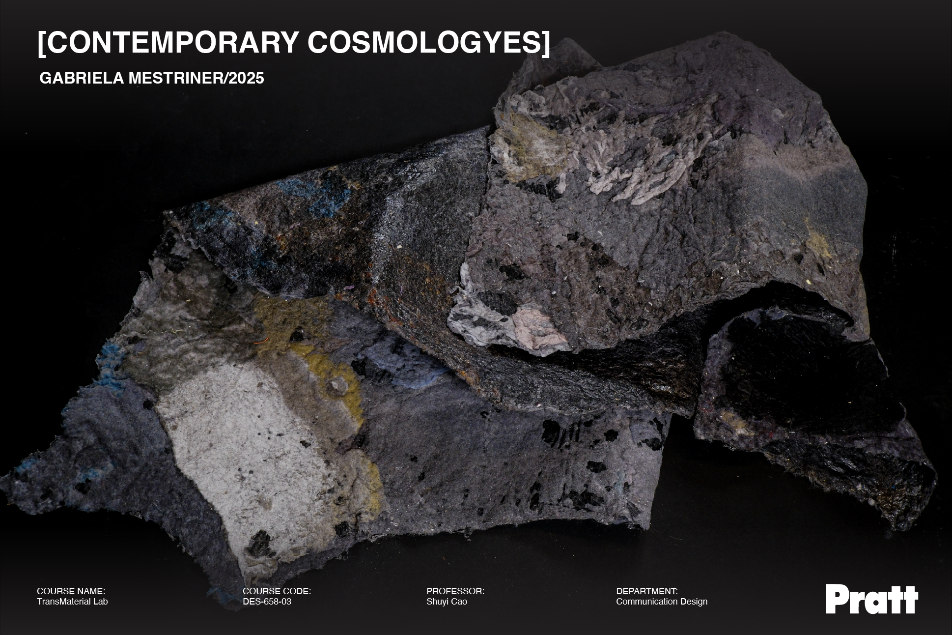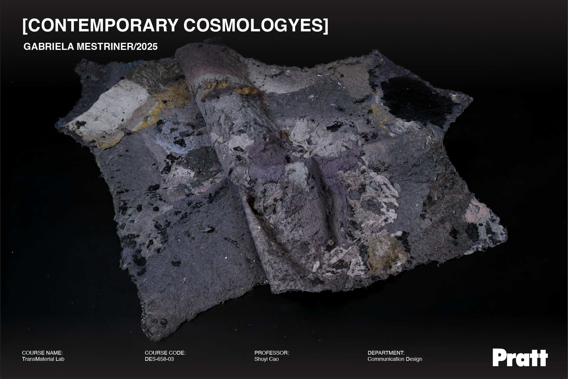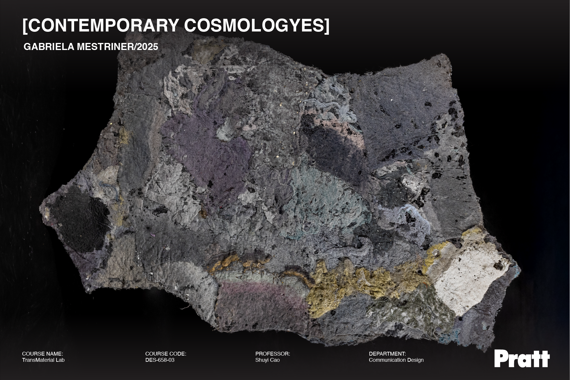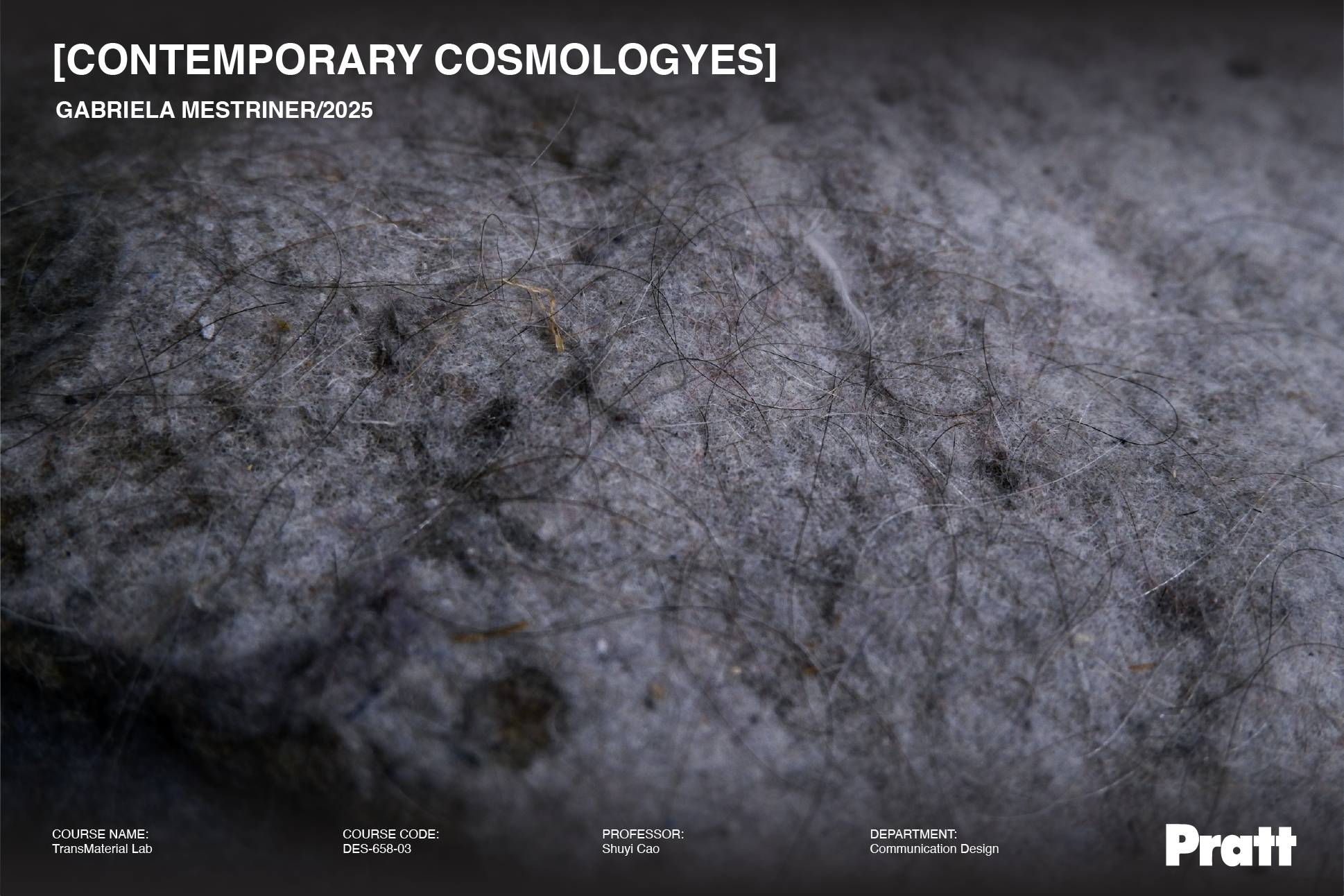 In Contemporary Cosmologies, lint is bound with a hand-crafted gelatin membrane, joining biological and chemical, residue and craft. Their encounter exposes tensions between reciprocity and extraction, asking what forms of life are remembered or forgotten. The resulting surface resists categorization, holding contradictions that invite a reconsideration of care, presence, and responsibility.