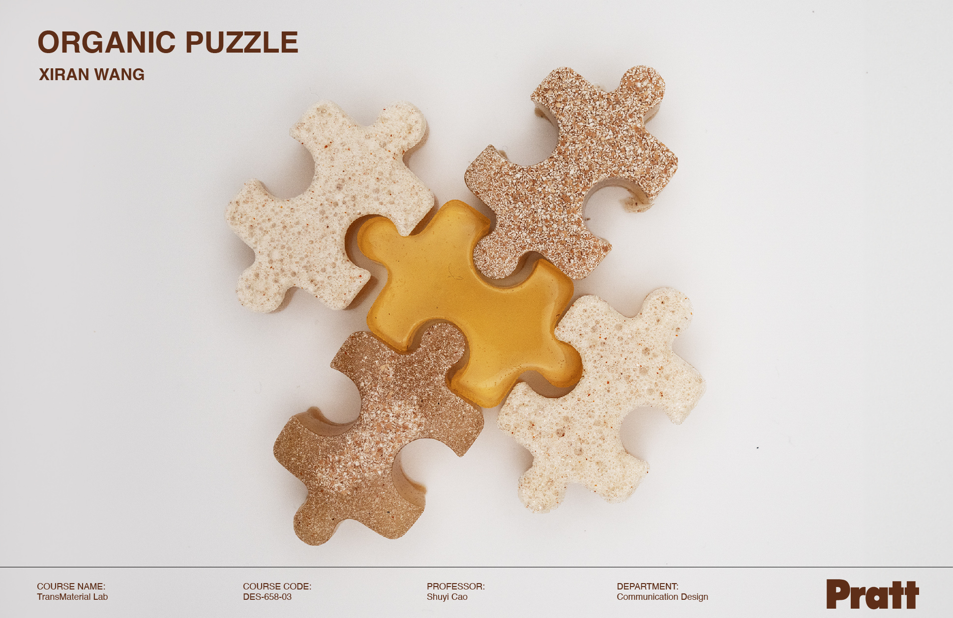 From mixing ingredients to shaping in puzzle molds, every time I experiment and document, I learn not simply about material’s properties, but also how it encourages the audience to have playful and interactive experiences while staying eco-friendly.