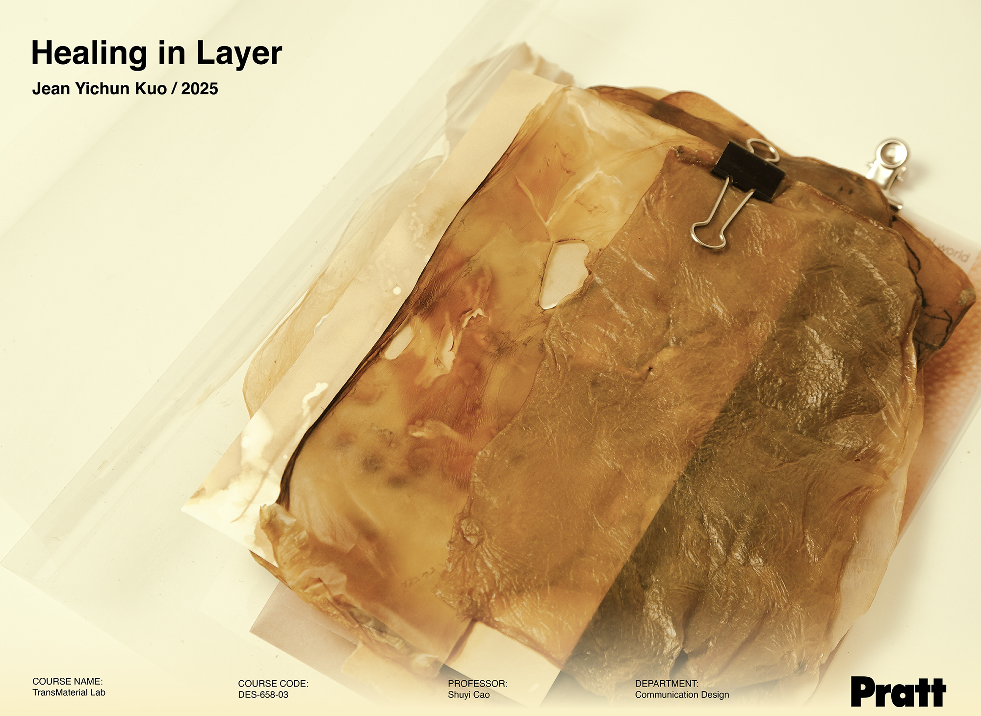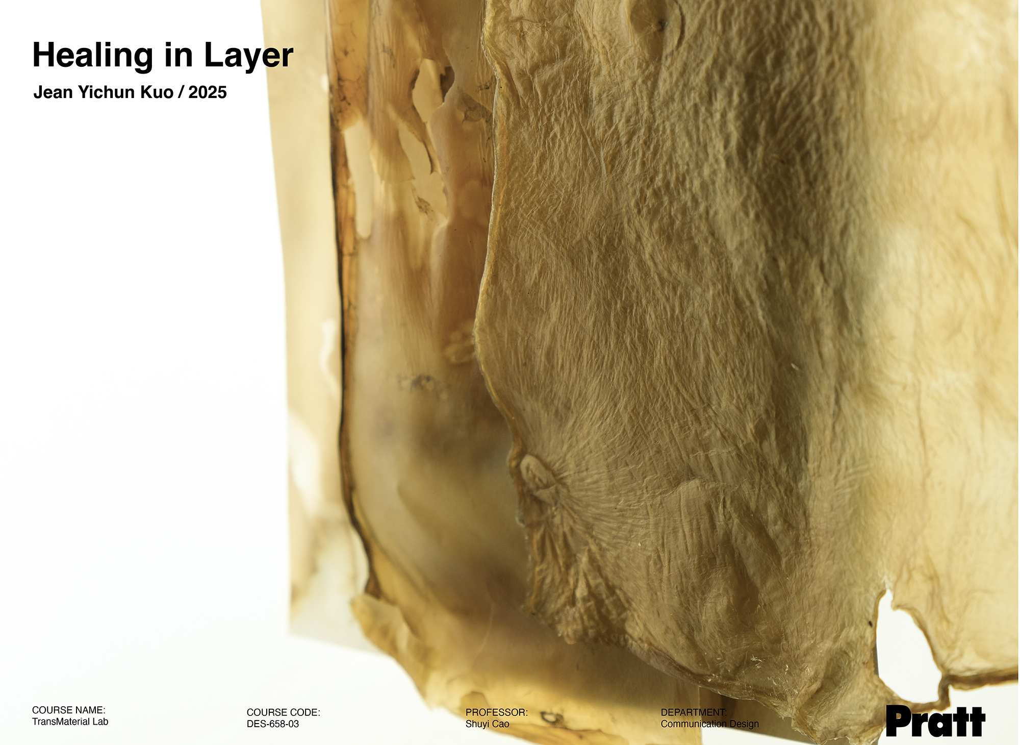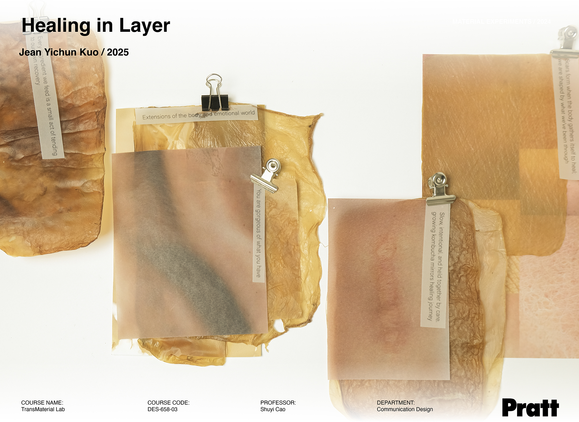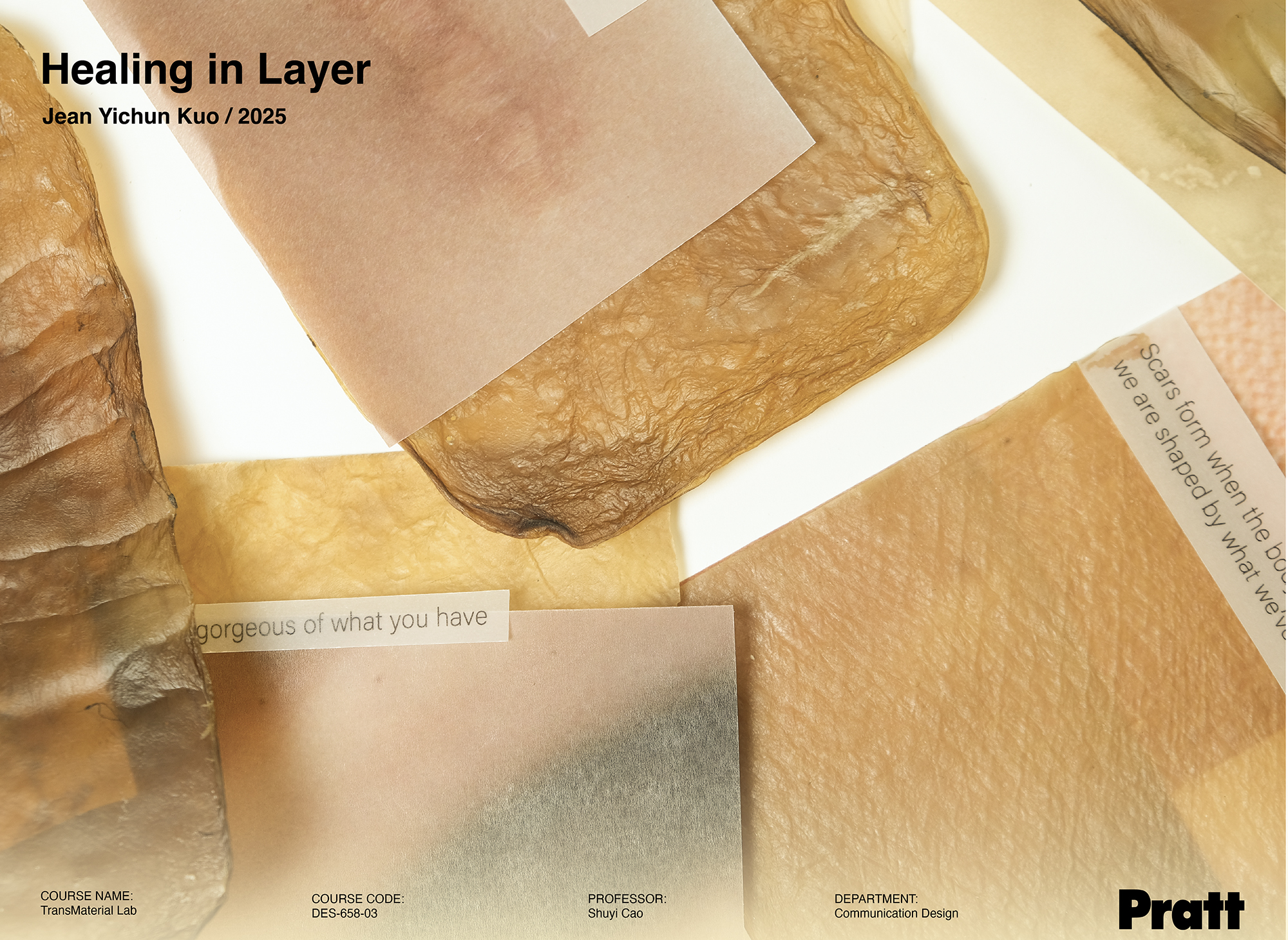 The objects are presented in a diary format, composed of mixed layers of dried kombucha cellulose, images of bodies, and the marks left by the material itself. Each piece tells its own story: the truth beneath a smooth surface, the care through which a scar is formed, and the ups and downs of a healing journey...etc. The diary becomes a medium for recording the unique story of each wound. Which documents how an injury occurred, what care was applied, and how resilience gradually formed. This project is an act of appreciating the past and what makes each individual unique.